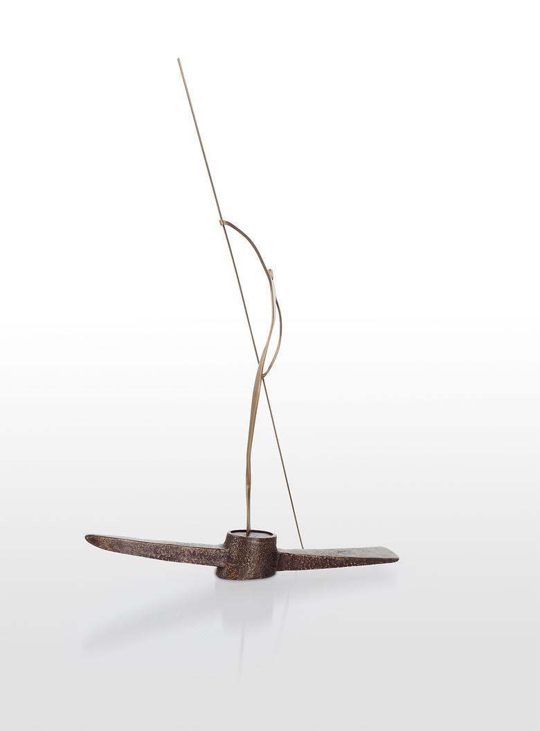 Es ist der Kontrast: Die schwere Masse des Bootes und die leichte Gestalt des Gondoliere, der darauf seinen Stecken in den Kanal taucht. Und es mag kein Zufall sein, dass das Boot die Gestalt einer Spitzhacke hat: Wintgens verbindet montane Schwere mit südländischer Leichtigkeit.