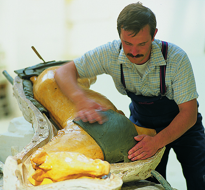 Am Anfang des Kreativprozesses steht die Idee des Künstlers. Sein Originalmodell geht in vielen Einzelschritten durch die Hände der Kunsthandwerker und wird für das Gießen vorbereitet. Das Wachsausschmelzverfahren basiert auf einer jahrtausendealten Tradition. Über 20 verschiedene Arbeitsgänge sind erforderlich, bis aus dem Urmodell ein fertiges Kunstwerk aus Bronze entsteht.