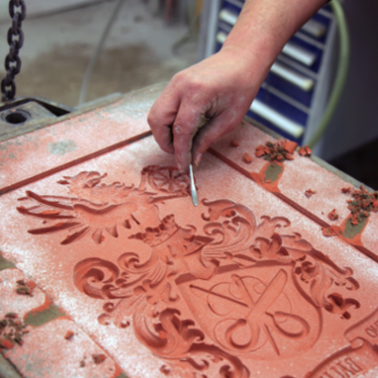 Der Sandguss, eine bewährte Technik für Reliefs, Schrifttafeln, Wappen und Kleinskulpturen mit geringen Hinterschneidungen. Der hierfür eingesetzte Formsand hat eine besondere Konsistenz. Seine Feinheit ermöglicht eine detailgetreue Wiedergabe des abzuformenden Modells aus Quarzsand, Bindeton und Wasser. Seine Festigkeit erhält der Formsand durch mechanisches Stampfen oder Pressen.