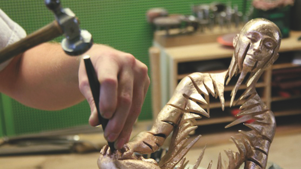 Once the chaser has separated the sprue channels and air outlet channels and possibly welded together the multi-part cast, he takes great care in reworking the surfaces with chasing iron (chasing tools) or a chisel, file, scraper, grinding and polishing tools. Faces, muscles and ornaments are created in concentrated sub-operations, nuancen are accentuated and the special features of the object are highlighted. The artist has the opportunity to accompany the subsequent processing or even to lend a hand. Artists and craftsmen often work hand in hand when it comes to detail chasing or finishing.